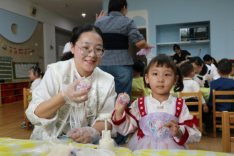 “通過(guò)月餅制作和集體繪畫,孩子們不僅了解了中秋與國(guó)慶的習(xí)俗,更在實(shí)踐中體會(huì)到了‘團(tuán)圓’與‘愛(ài)國(guó)’的意義。”縣幼兒園西湖路分園園長(zhǎng)王紫霆說(shuō):“后續(xù)我們還會(huì)在班級(jí)開(kāi)展系列活動(dòng),讓傳統(tǒng)文化與愛(ài)國(guó)情懷在孩子們的心中慢慢發(fā)芽。”