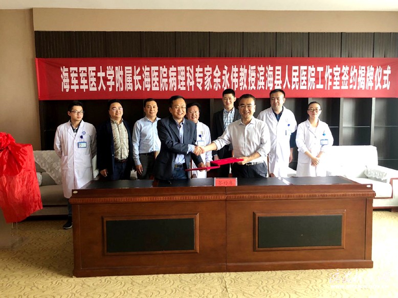 近日,海軍軍醫(yī)大學(xué)附屬長海醫(yī)院病理科專家余永偉教授工作室簽約揭牌儀式在縣人民醫(yī)院舉行。縣醫(yī)院院長吳限與余永偉教授簽署合作協(xié)議,共同為工作室揭牌。