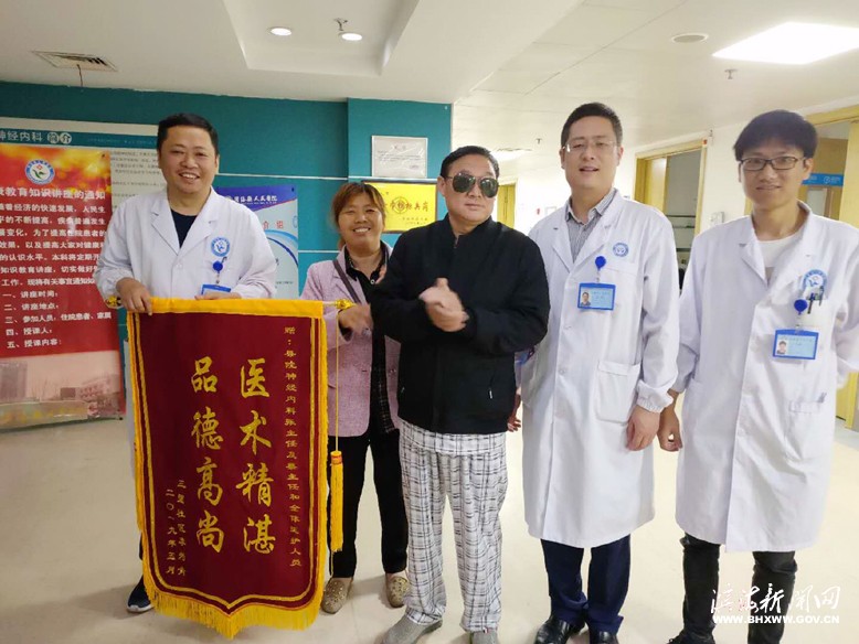 56歲的男性患者李某,農(nóng)民,既往否認(rèn)有其他病史,近日在活動狀態(tài)下突發(fā)意識不清,家屬將其送至縣人民醫(yī)院急診科。醫(yī)生初步考慮患者為腦卒中,立即啟動卒中救治綠色通道,完成一站式多模式頭顱CT,20分鐘即確診為急性腦梗死、基底動脈頂端完全閉塞,收入卒中病房后,立即施行rt-PA靜脈溶栓治療。醫(yī)生診斷后認(rèn)為,患者是顱內(nèi)大血管閉塞,靜脈溶栓治療大血管開通率較低,療效不佳,因此即刻協(xié)調(diào)神經(jīng)內(nèi)科介入救治。神經(jīng)內(nèi)科主任張鵬、副主任醫(yī)師蔡勇立即做好術(shù)前準(zhǔn)備?;颊呓?jīng)靜脈溶栓治療后癥狀改善不明顯。經(jīng)醫(yī)生綜合評估病情后,為其行動脈內(nèi)支架取栓手術(shù),成功開通閉塞血管。血管開通后約一小時,患者神志逐漸轉(zhuǎn)清,能言語,四肢可以活動。經(jīng)后續(xù)治療,患者基本痊愈,近日康復(fù)出院。患者和家屬對神經(jīng)內(nèi)科診療服務(wù)非常滿意,出院時送來錦旗表示謝意。