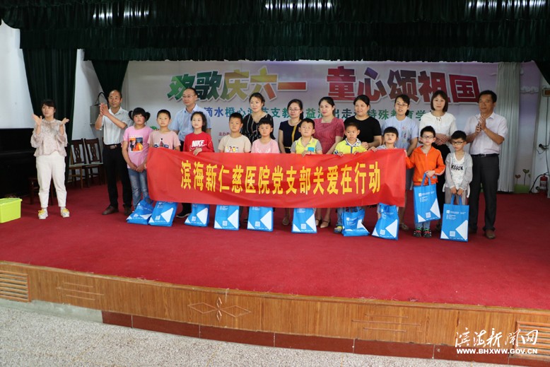 為慶祝建黨98周年,6月25日,濱海新仁慈醫(yī)院黨支部書記張教秀、院長助理吳劍帶領(lǐng)部分黨員,到縣特殊教育學(xué)校開展獻(xiàn)愛心慰問活動。
