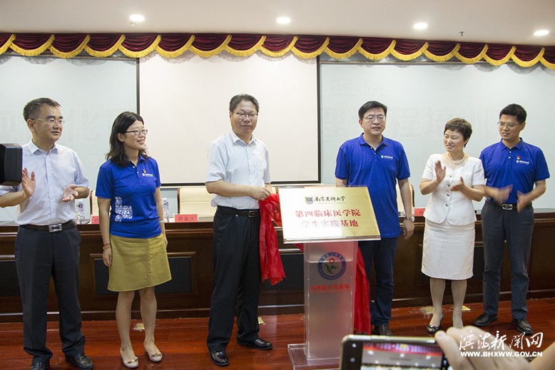 南京醫(yī)科大學(xué)研究生院黨委書記孫厚純、南京醫(yī)科大學(xué)第四臨床醫(yī)學(xué)院黨委書記院長邵海亞、我縣副縣長程熙、縣衛(wèi)健委主任楊光等領(lǐng)導(dǎo)出席活動(dòng)并分別致辭,邵海亞院長與楊光主任共同為“實(shí)踐基地”揭牌。