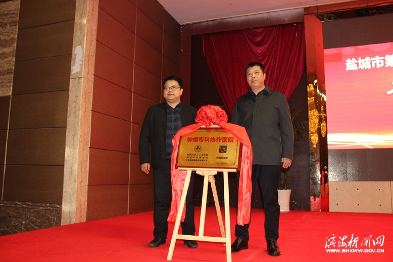 在熱烈的掌聲中,劉宏、戴亞明一起為“鹽城市二院、鹽城市腫瘤醫(yī)院、濱??颠_(dá)醫(yī)院腫瘤專科協(xié)作醫(yī)院”揭牌,現(xiàn)場(chǎng)一片歡樂。