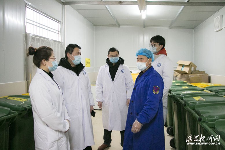 總務(wù)科人員在抗疫一線現(xiàn)場(chǎng)研究解決問(wèn)題。