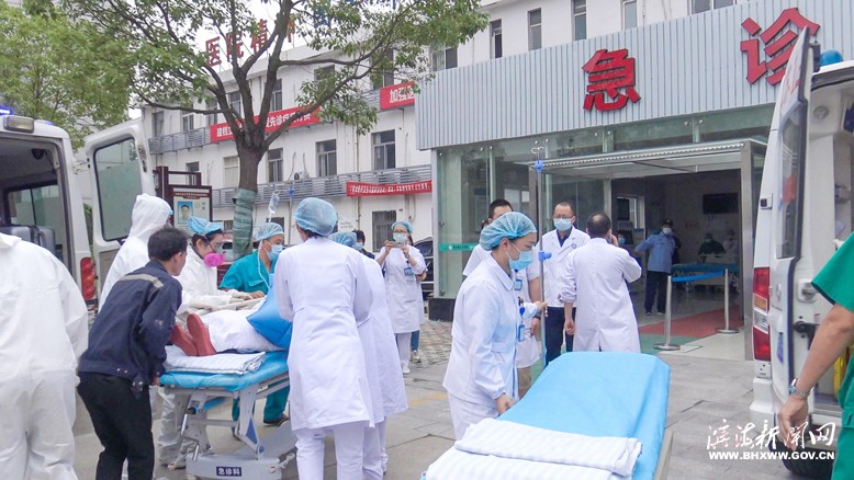 應(yīng)急辦第一時間到達(dá)急診科現(xiàn)場,與急診科主任一起指揮、協(xié)調(diào)。應(yīng)急辦迅速匯報分管院長,啟動突發(fā)公共衛(wèi)生事件醫(yī)療救援應(yīng)急預(yù)案,開通綠色通道,通知醫(yī)務(wù)科和后勤保障組火速到位,及時將人員傷亡、搶救等情況報告分管領(lǐng)導(dǎo)。急診科將科內(nèi)醫(yī)護(hù)人員分成3組,包括預(yù)檢分診組、醫(yī)療救治組和檢查轉(zhuǎn)運(yùn)組;同時備好急救物品,做好接診救治準(zhǔn)備和病人信息流向記錄。醫(yī)務(wù)科聯(lián)合外科總值班通知各專科醫(yī)務(wù)人員緊急趕到急診科待命,負(fù)責(zé)傷員救治、會診工作,通知手術(shù)室、檢驗科、影像科、超聲科等相關(guān)科室做好為傷員進(jìn)行檢驗與檢查的準(zhǔn)備工作。所有接到電話指令的醫(yī)護(hù)人員和后勤保障人員在規(guī)定的時間內(nèi)全部到位。