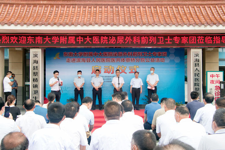 東南大學(xué)附屬中大醫(yī)院副院長陳明,縣政府辦公室副主任李健,縣醫(yī)院黨委書記、院長吳限 ,東南大學(xué)附屬中大醫(yī)院泌尿外科“前列衛(wèi)士”專家團10余名專家,以及蔡橋分院50余名醫(yī)務(wù)人員參加儀式。