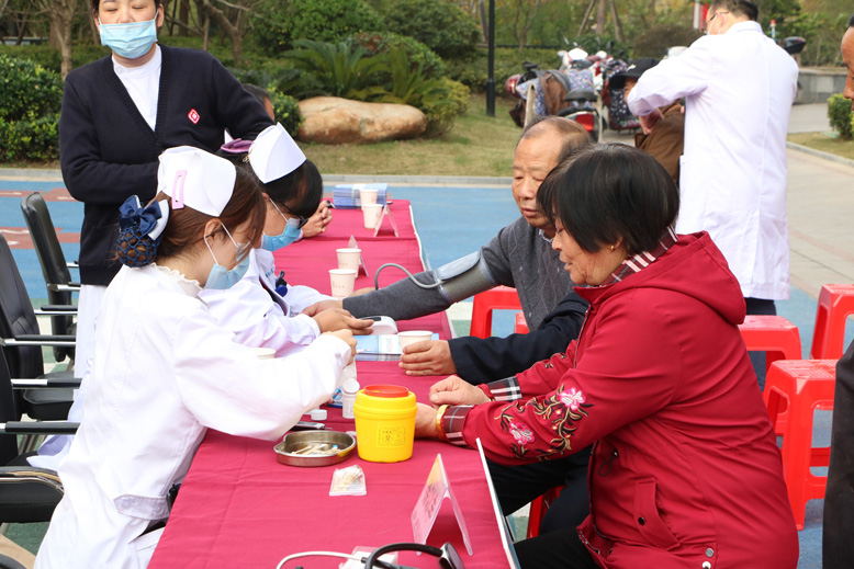 重陽(yáng)節(jié)當(dāng)天,張教秀又率領(lǐng)部分黨員、醫(yī)護(hù)工作者,分別走進(jìn)北蕩社區(qū)的歐堡利亞悅府小區(qū)、臻園小區(qū),聯(lián)同歐堡利亞物業(yè)服務(wù)有限公司共同開(kāi)展了“九九重陽(yáng)節(jié),健康義診行”活動(dòng)。義診現(xiàn)場(chǎng),該院醫(yī)護(hù)工作者們細(xì)致地為居民,特別是老人們檢查身體、測(cè)量血壓、血糖,耐心地詢(xún)問(wèn)病史,解答疑問(wèn),并就新冠疫情防控和秋冬季老年常見(jiàn)慢性病防治進(jìn)行了科普宣傳。