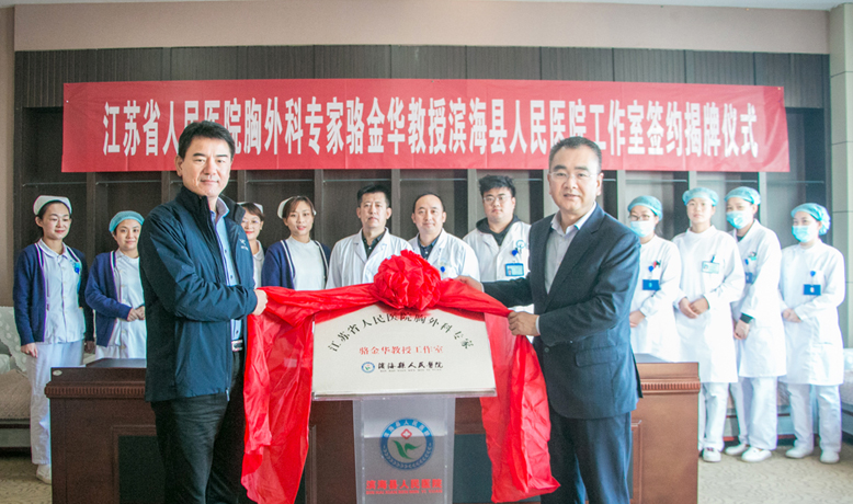 近日,縣人民醫(yī)院舉行“江蘇省人民醫(yī)院胸外科專家駱金華教授工作室”簽約揭牌儀式??h醫(yī)院黨委書記、院長吳限與駱金華教授簽署合作協(xié)議,并共同為工作室揭牌??h醫(yī)院心胸外科等相關(guān)科室人員參加活動。