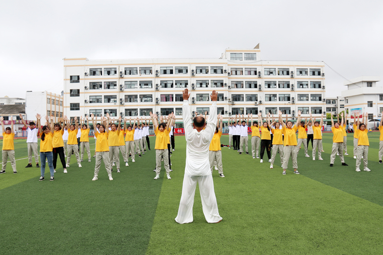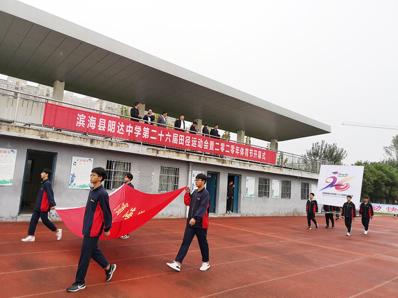日前,明達中學隆重舉辦第二十六屆田徑運動會。伴隨著激昂的運動員進行曲,國旗校旗方隊、會徽標牌方隊、彩旗方隊、裁判員方隊以及55支運動員代表隊排著整齊的隊列、邁著矯健的步伐有序進場,接受主席臺上校領導的檢閱。