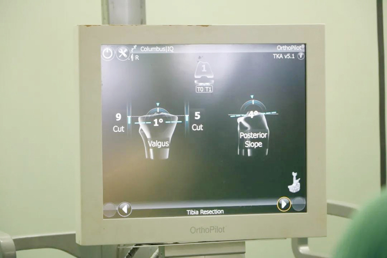 近年來,隨著AI技術(shù)的快速發(fā)展,計(jì)算機(jī)導(dǎo)航、機(jī)器人輔助手術(shù)在人工關(guān)節(jié)置換領(lǐng)域發(fā)展迅速。濱海新仁慈醫(yī)院骨科精確把握發(fā)展方向,成功引入德國(guó)蛇牌導(dǎo)航系統(tǒng),占領(lǐng)關(guān)節(jié)置換手術(shù)精準(zhǔn)醫(yī)療的制高點(diǎn)。計(jì)算機(jī)導(dǎo)航下的人工膝關(guān)節(jié)置換術(shù)是精準(zhǔn)醫(yī)療在骨科的一項(xiàng)標(biāo)志性技術(shù),它的突出特點(diǎn)就是“準(zhǔn)”。該手術(shù)能夠幫助術(shù)者實(shí)現(xiàn)精準(zhǔn)的截骨、準(zhǔn)確的力線糾正、優(yōu)化假體的選擇及精確的軟組織平衡。由于手術(shù)精確,置換上的人工關(guān)節(jié)使用壽命也將大幅提高,有利于病人康復(fù)及術(shù)后功能恢復(fù),尤其對(duì)于存在畸形、骨缺損的病人治療效果更好。