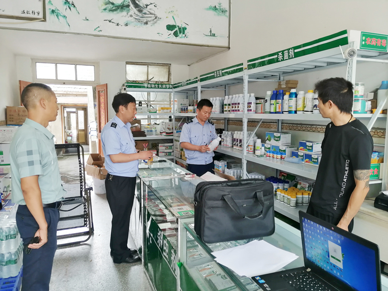 農(nóng)業(yè)執(zhí)法人員檢查農(nóng)藥農(nóng)資經(jīng)營單位