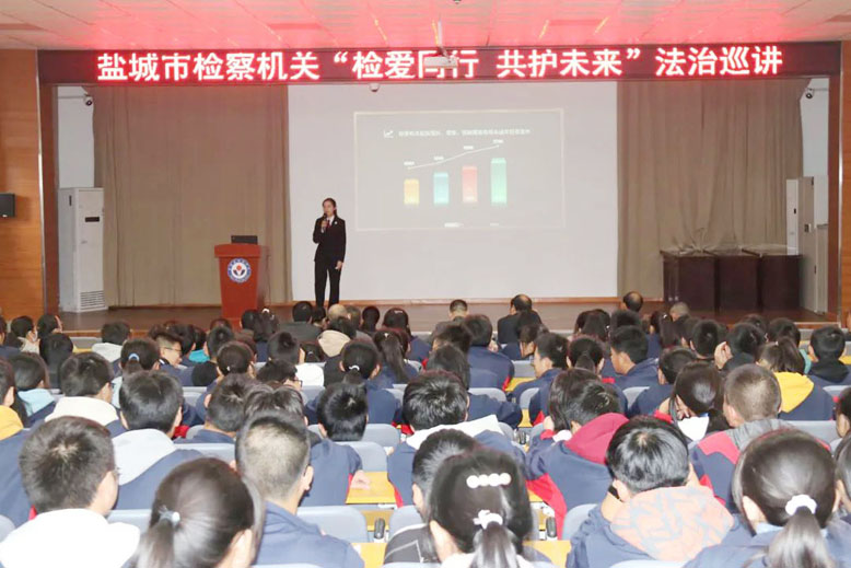 近日,明達中學在該校報告廳舉辦“檢愛同行 共護未來”為主題的法治宣講活動。鹽城市“湖海未檢”法治宣講團三位檢察官精彩的演講,解開了同學們心中一個個疑惑。報告廳里笑聲陣陣、掌聲如潮。