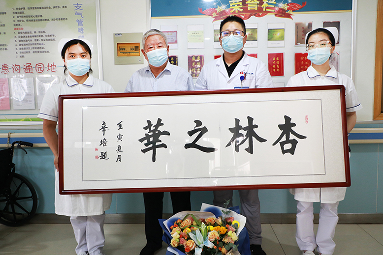 患者辛某,男,71歲,去年年底在外地醫(yī)院做了心臟支架植入手術(shù),今年6月患者突感胸悶心慌、時有頭暈等癥狀,后住該院治療。6月16日,醫(yī)院為他行冠狀動脈造影術(shù)及經(jīng)皮冠狀動脈介入治療手術(shù),術(shù)后他恢復(fù)良好。為表示感謝,辛大爺還書寫一幅字贈予醫(yī)護(hù)人員。