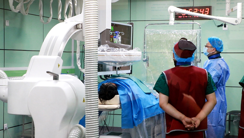 經(jīng)術(shù)前充分準(zhǔn)備,上午8時手術(shù)順利開始。介入導(dǎo)管室內(nèi),兩位醫(yī)師緊張有序地操作,術(shù)中患者情況穩(wěn)定。上午9時許,在鄭州大學(xué)第二附屬醫(yī)院專家和濱海新仁慈醫(yī)院介入導(dǎo)管室團(tuán)隊的不懈努力下,手術(shù)順利完成。術(shù)后,患者無任何不良癥狀,安返病房。