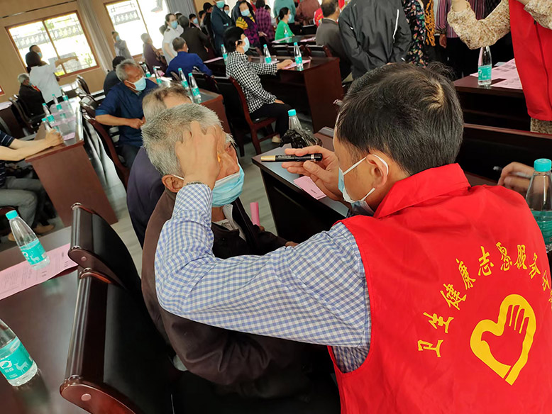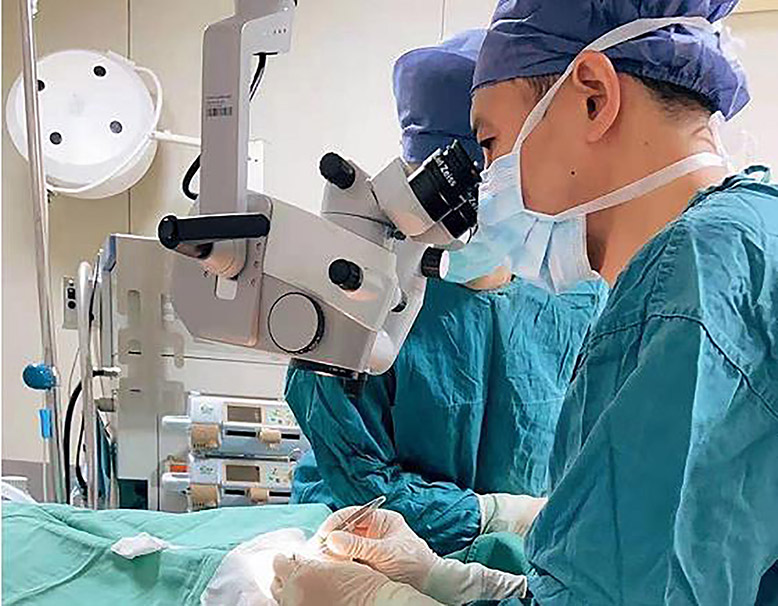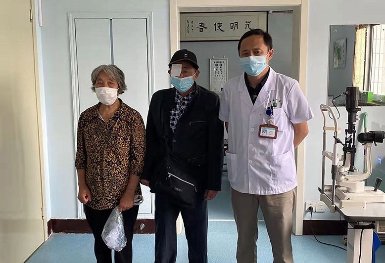 看到這樣一個(gè)病情復(fù)雜的病例以及老人無(wú)助期待的眼神,作為一名有著多年黨齡的眼科醫(yī)務(wù)人員,雖有些猶豫,但醫(yī)生的職責(zé)告訴自己:只要有1%的希望,就要做100%的努力。楊?lèi)?ài)民帶領(lǐng)眼科團(tuán)隊(duì)詳細(xì)研究病情,分析了術(shù)中術(shù)后可能出現(xiàn)的各種情況,并邀請(qǐng)?zhí)悄虿】萍澳I內(nèi)科醫(yī)生對(duì)患者的全身狀況進(jìn)行綜合評(píng)估。經(jīng)過(guò)充分準(zhǔn)備,楊?lèi)?ài)民為患者在局麻下實(shí)施了“右眼虹膜囊腫切除+瞳孔放射狀切開(kāi)+白內(nèi)障超聲乳化+折疊式人工晶體植入術(shù)”。手術(shù)順利,術(shù)后第二天患者視力檢查結(jié)果為0.15,讓患者及其家人露出了久違的笑容。