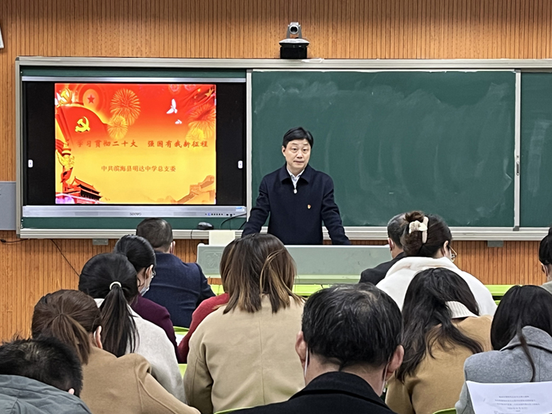 該校黨總支書記、校長周立軍向全體黨員宣講黨的二十大精神。周立軍逐字逐句宣講二十大報告相關(guān)內(nèi)容,并結(jié)合教育工作實(shí)際,闡述二十大報告對學(xué)校提升質(zhì)量、辦人民滿意教育的重要指導(dǎo)意義。他語重心長地對明達(dá)中學(xué)黨員提出三點(diǎn)要求。一是希望大家做帶頭學(xué)習(xí)的先行者,認(rèn)真學(xué)習(xí)宣傳貫徹二十大報告精神;二是做教育教學(xué)改革的踐行者,以二十大精神為指引,扎實(shí)開展教研活動,積極推進(jìn)課堂教學(xué)改革,提高教學(xué)實(shí)效;三是做務(wù)實(shí)作風(fēng)的標(biāo)桿者,亮身份,敢擔(dān)當(dāng),發(fā)揮帶頭作用,引領(lǐng)全體教職員工共同推動學(xué)校發(fā)展。