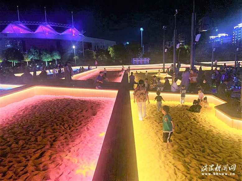夢幻絢麗的燈光酷秀、多彩有趣的沙灘玩點、科技互動的動感投影……近期,縣城管局新改建的體育公園下沉廣場“靚點”十足,“玩”出了新花樣兒,引來無數(shù)家長兒童在這里玩耍體驗。