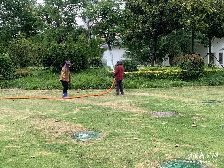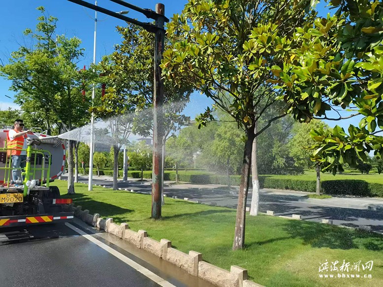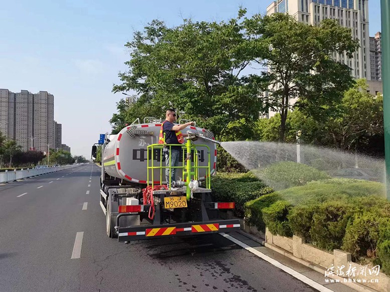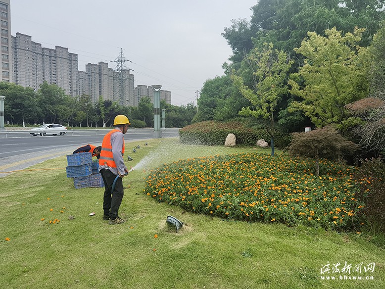 精細(xì)管護(hù)顯成效。一是強(qiáng)化綠化巡查,根據(jù)天氣預(yù)報、各地段綠化長勢和土壤濕度等狀況,及時制定和調(diào)整澆水計劃,實現(xiàn)精準(zhǔn)澆灌;二是采用車輛機(jī)械噴灌、人工引管澆灌等方式,做到澆水全覆蓋,確保澆水效果;三是增加重點地段、旱情嚴(yán)重區(qū)域的澆水頻次,確保澆足、澆透、澆勻、澆實;四是及時進(jìn)行除草、松土,避免土壤板結(jié),增強(qiáng)土壤蓄水保濕能力,提高澆灌效果。