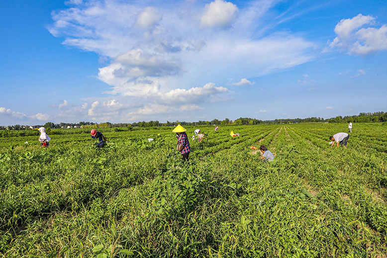 8月15日,記者在界牌鎮(zhèn)周莊村菊花種植基地看到,村民們?nèi)宄扇海χo基地的菊花除草,田間不時傳來陣陣歡笑聲。
