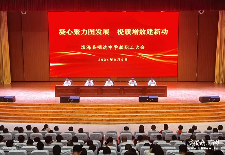 為凝聚全體教職員工力量,保障教育教學(xué)工作的穩(wěn)步推進(jìn),確保新學(xué)期各項(xiàng)工作“開(kāi)門紅”,近日,明達(dá)中學(xué)全體教職工齊聚報(bào)告廳,召開(kāi)2024年秋學(xué)期開(kāi)學(xué)教職工大會(huì)。校黨總支書記李志國(guó)參加會(huì)議并講話。校長(zhǎng)于帥主持。