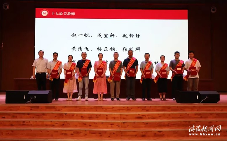 躬耕篤行,采擷芬芳。會(huì)上,副校長(zhǎng)龔成東首先宣讀了表彰決定。周愛(ài)華、高麗娜等33人榮獲“先進(jìn)工作者”稱號(hào);黃長(zhǎng)泉、傅菁等10對(duì)師徒攜手同行、教學(xué)相長(zhǎng),被評(píng)為“優(yōu)秀師徒對(duì)子”;原高一語(yǔ)文備課組等10個(gè)備課組精誠(chéng)團(tuán)結(jié)、精細(xì)教研,榮獲“先進(jìn)備課組”稱號(hào);陳雪飛等9位老師,筆耕不輟、深耕科研、以研促教,被評(píng)為“教科研先進(jìn)個(gè)人”;李一波、周同華、孟慶海、顧英、李建中等5位老師,光榮從教三十年,雖皓首蒼顏,矢志不渝;李福揚(yáng)、梁明高、張成群、周通林、趙鶴成、解立順等6位老師,堅(jiān)守杏壇近四十載,初心不改,榮獲“敬業(yè)奉獻(xiàn)獎(jiǎng)”;趙一帆、成宜軒、趙靜靜、黃清飛、梅正鋼、張成群、戴冬蘭、王信亞、趙陽(yáng)、周通林等10位老師兢兢業(yè)業(yè)工作、扎扎實(shí)實(shí)育人,用心教書,用愛(ài)化人,榮獲“最美教師”稱號(hào)。