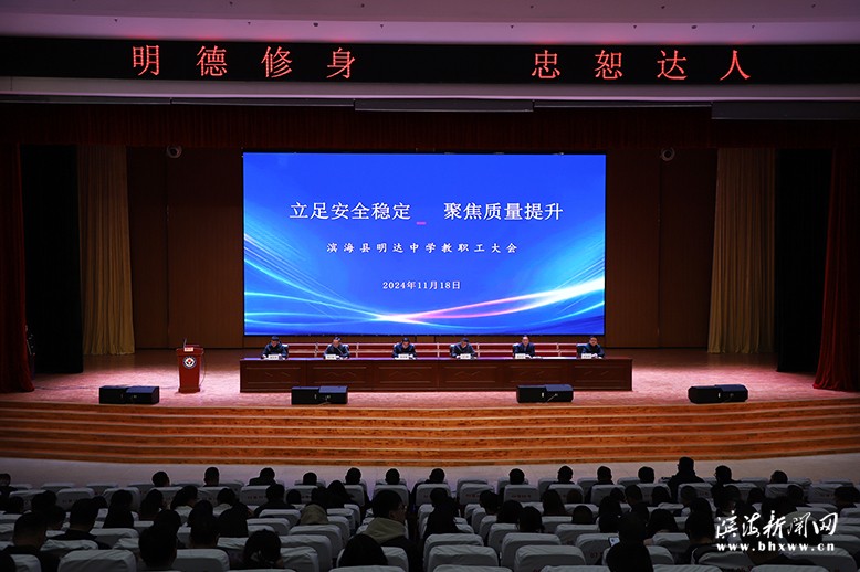 天水清相入,秋冬氣始交。全體明達(dá)人熱情如火,奮勇向前。11月18日晚,明達(dá)中學(xué)教職工齊聚報(bào)告廳,召開2024年秋學(xué)期第四次教職工大會。本次會議強(qiáng)調(diào)校園安全,聚焦教學(xué)質(zhì)量提升。校黨總支書記李志國、校長于帥參加會議并講話,副校長周仁春主持會議。