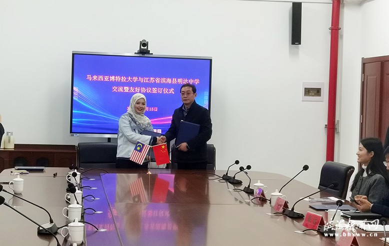11月7日與15日,馬來西亞理工大學(xué)、馬來西亞博特拉大學(xué)代表先后到明達(dá)中學(xué)進(jìn)行交流并簽訂友好協(xié)議。縣教育局副局長皋遠(yuǎn),明達(dá)中學(xué)黨總支書記李志國、校長于帥等出席。