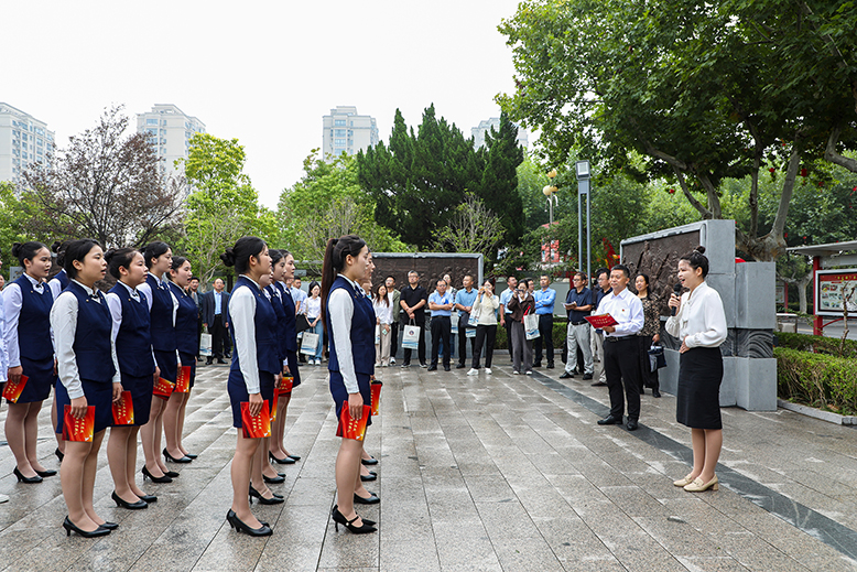 課堂上,執(zhí)教教師通過示范講解解舜臣烈士紅色故事,引導(dǎo)學(xué)生分組實踐、多維點評。學(xué)生們在浮雕場景前聲情并茂地講述革命先輩事跡,將旅游專業(yè)講解技能與紅色精神傳承緊密結(jié)合。學(xué)生們紛紛表示,這種實景教學(xué)讓他們在練習(xí)專業(yè)技能的同時,更真切地感受到革命先輩的愛國情懷,明白了紅色精神的傳承意義。