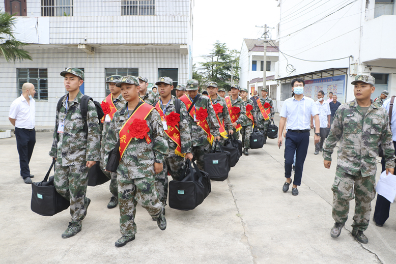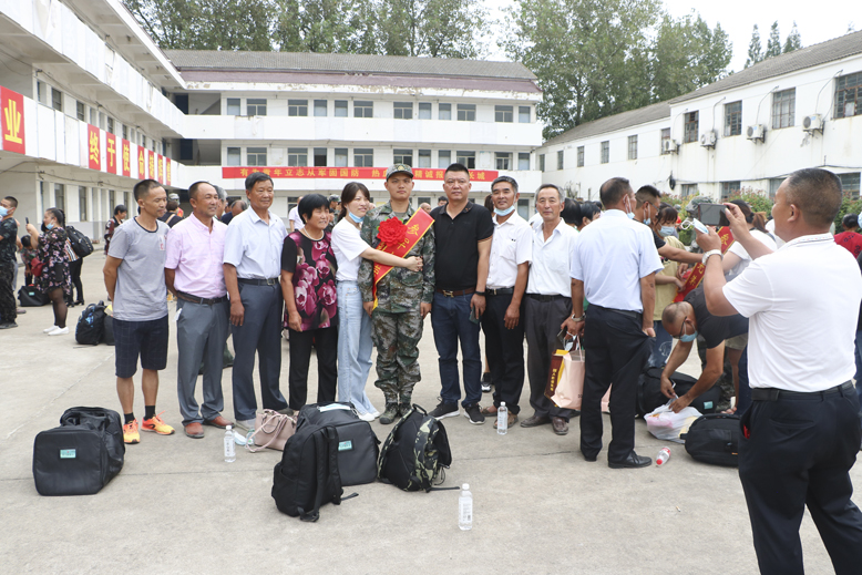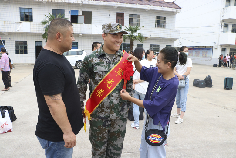 9月10日,我縣今年第一批185名新兵穿上嶄新的軍裝,起程奔赴軍營。圖①:新兵列隊(duì)出發(fā)。圖②:新兵和家人合影留念。圖③:家長為即將啟程的孩子佩戴紅花。