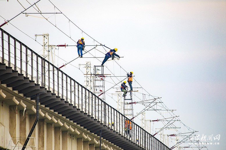 12月20日,濱海港鐵路專用線建設現(xiàn)場,牽引供電專業(yè)人員正在對鐵路供電接觸網(wǎng)進行精調(diào)和力矩緊固等作業(yè),為即將開始的聯(lián)調(diào)聯(lián)試夯實基礎。 (本條新聞版權(quán)歸濱??h融媒體中心所有,轉(zhuǎn)載請注明出處。)