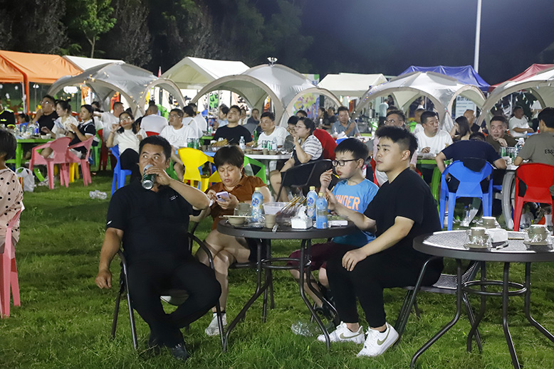 近日, 蘇超第十輪鹽城隊(duì)與無(wú)錫隊(duì)比賽中,我縣梨花語(yǔ)景區(qū)“第二現(xiàn)場(chǎng)”,許多群眾圍坐大屏前觀看比賽,歡呼、加油聲不斷,大家盡享足球魅力。 (本報(bào)記者 陳沭宇 攝) (本條新聞版權(quán)歸濱海日?qǐng)?bào)所有,轉(zhuǎn)載請(qǐng)注明出處。)