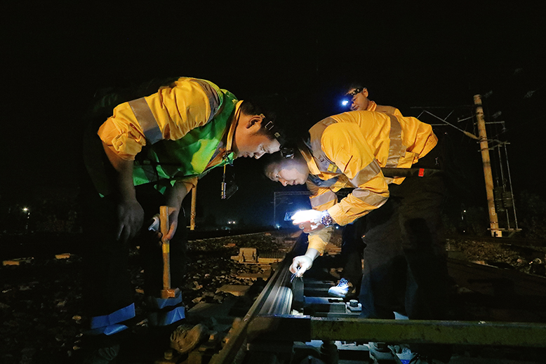 為保障國慶中秋“雙節(jié)”期間高鐵運(yùn)輸安全暢通,連日來,濱海港站組織人員加強(qiáng)線路設(shè)備巡檢,全面為設(shè)備“強(qiáng)身健體”,守護(hù)群眾出行安全。 (本報(bào)記者 劉朔池 攝)(本條新聞版權(quán)歸濱海日?qǐng)?bào)所有,轉(zhuǎn)載請(qǐng)注明出處。)
