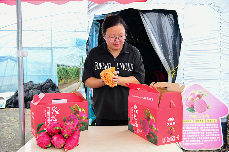 金秋時(shí)節(jié),濱淮鎮(zhèn)開心果園的火龍果陸續(xù)成熟,果農(nóng)們忙著采摘、裝箱,上市銷售。(本報(bào)記者 劉朔池 攝)(本條新聞版權(quán)歸濱海日?qǐng)?bào)所有,轉(zhuǎn)載請(qǐng)注明出處。)