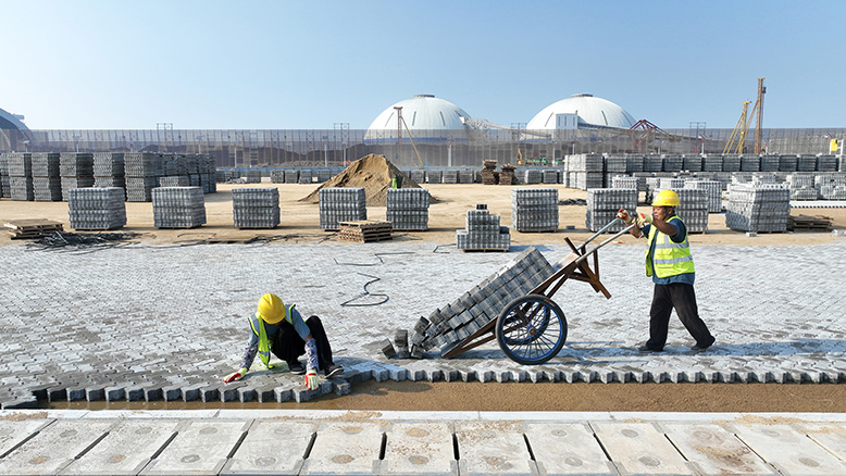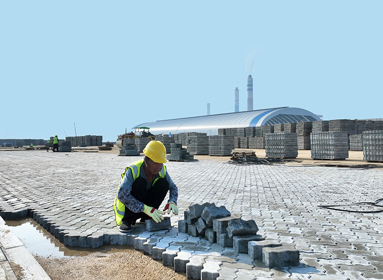 10月11日,濱海港通用碼頭三期項目建設(shè)現(xiàn)場,施工人員正在進(jìn)行堆場面層聯(lián)鎖塊鋪設(shè)。目前,該項目已完成投入約2.6億元。 (本報記者 陳沭宇 攝)(本條新聞版權(quán)歸濱海日報所有,轉(zhuǎn)載請注明出處。)
