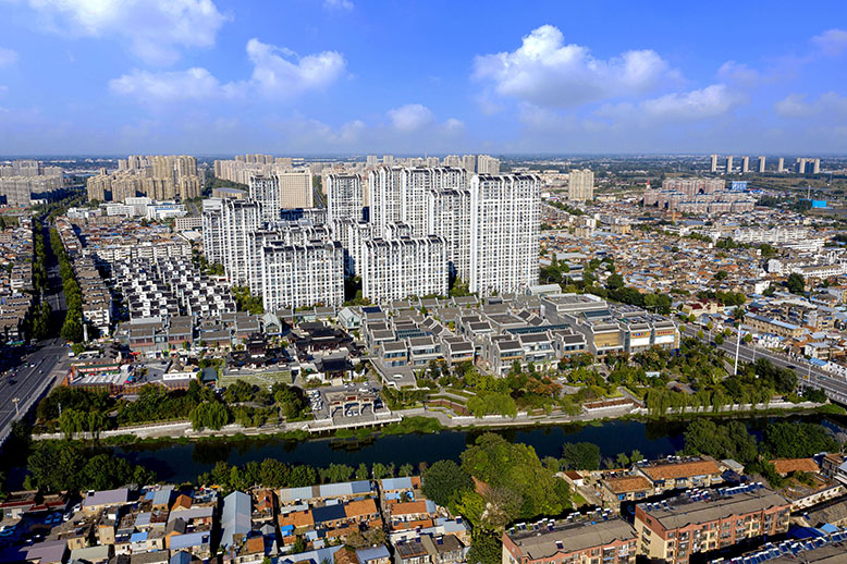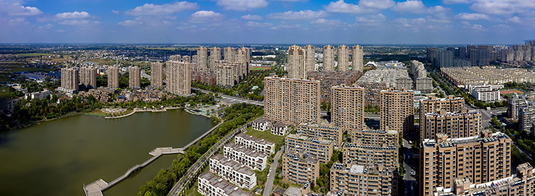 水綠新城,優(yōu)雅地浮現(xiàn)在明凈的秋光里。天是那種洗過的、近乎于琉璃的藍(lán),高曠得有些不真實。一朵朵白云,悠閑地漂浮在天空里,有些像圣潔的蓮花,有些則像絲滑的棉絮。