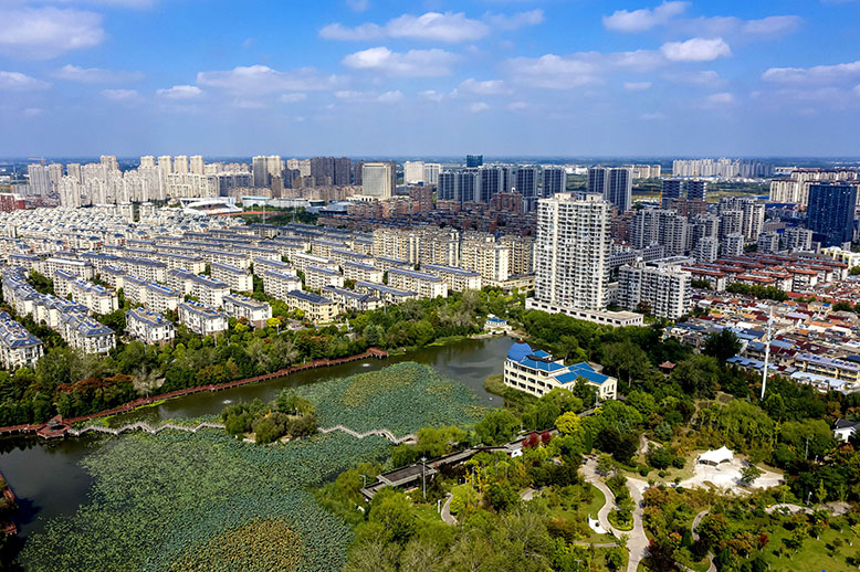 秋陽尚暖,大地上仍然遍布盈盈的綠意,些許涂抹上赭石、明黃與淺絳,像打翻了的調(diào)色盤,斑斕而有韻致。南湖、西湖、清水湖這三顆晶亮的寶石嵌鑲在城市之間,閃爍著深邃的藍(lán)。這綠和藍(lán)調(diào)和交融在一起,在宣紙上洇開,成為這座城市最為澄澈靚麗的底色。
