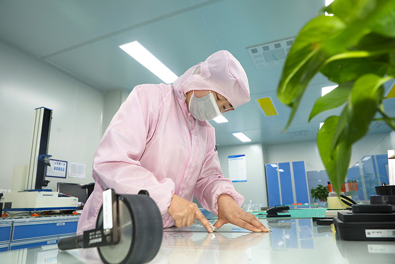 10月12日,江蘇金仕倫新材料科技有限公司生產(chǎn)車間內(nèi),工人們在趕制一批訂單。該公司新建涂布生產(chǎn)線8條、流延生產(chǎn)線3條,可實(shí)現(xiàn)年產(chǎn)6000萬平方米多功能電子薄膜及100萬套汽車隱形車衣,產(chǎn)品打入蘋果、華為、比亞迪、特斯拉等品牌的供應(yīng)鏈體系。當(dāng)前企業(yè)正緊抓四季度生產(chǎn)黃金期,滿負(fù)荷運(yùn)轉(zhuǎn),確保完成全年目標(biāo)任務(wù)。 (本報記者 劉朔池 攝)(本條新聞版權(quán)歸濱海日報所有,轉(zhuǎn)載請注明出處。)