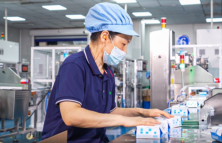 連日來(lái),縣工業(yè)園凈呼吸生物科技公司生產(chǎn)車(chē)間內(nèi),工人們緊盯生產(chǎn)流水線(xiàn)作業(yè),爭(zhēng)分奪秒趕制訂單,全力沖刺年度生產(chǎn)目標(biāo)。 (本報(bào)記者 陳沭宇 攝)(本條新聞版權(quán)歸濱海日?qǐng)?bào)所有,轉(zhuǎn)載請(qǐng)注明出處。)